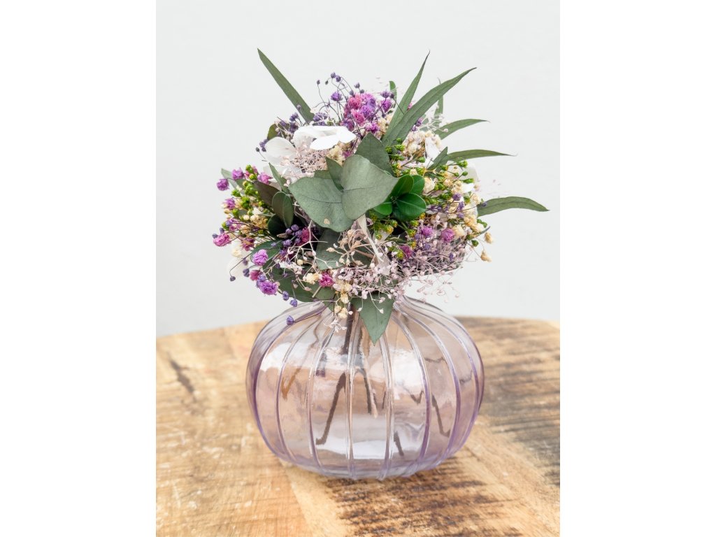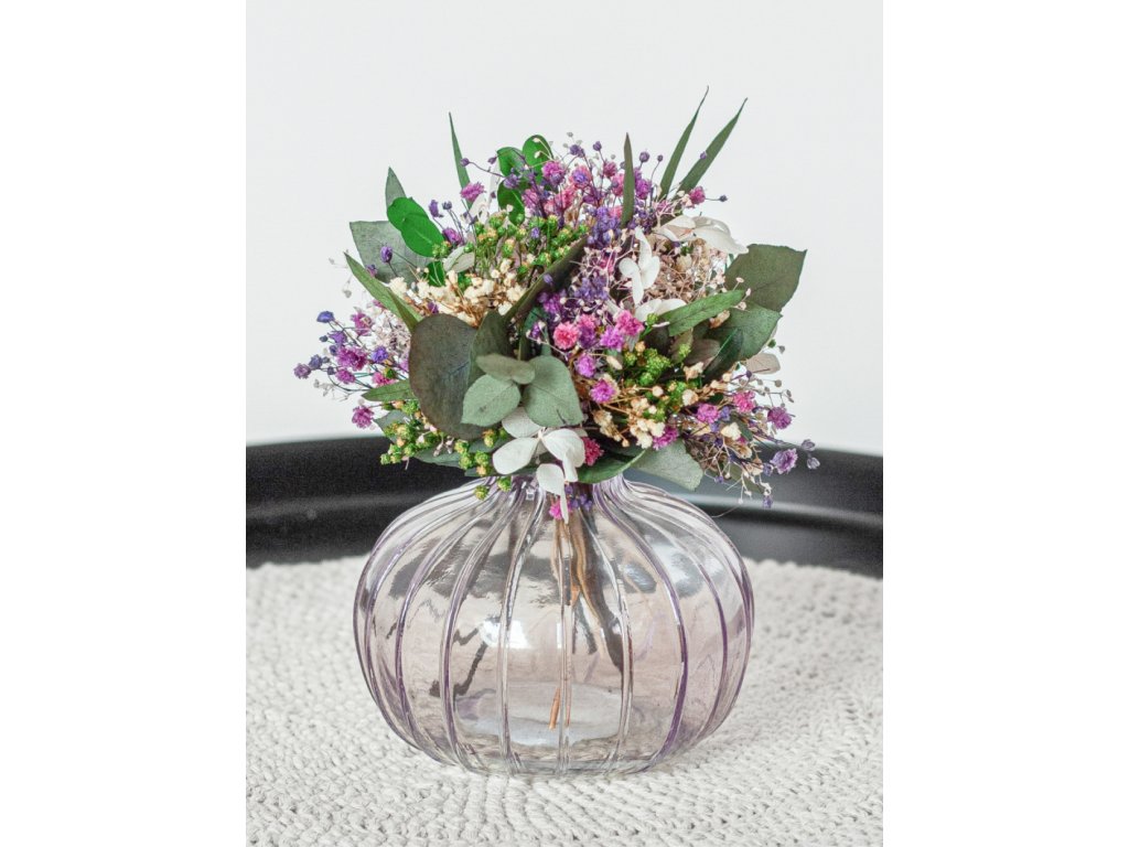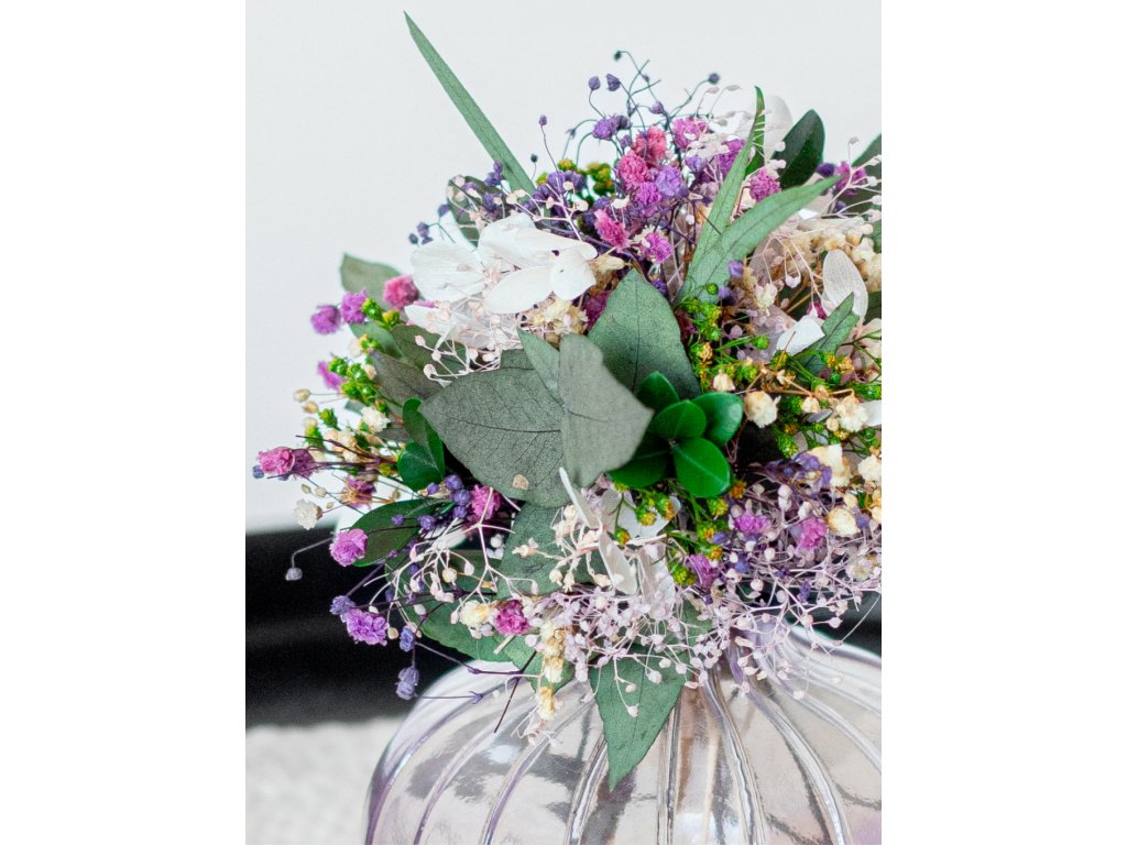 Aranžmán zo stabilizovanych kvetov v sklenenej vázičke "Viola Elegance"