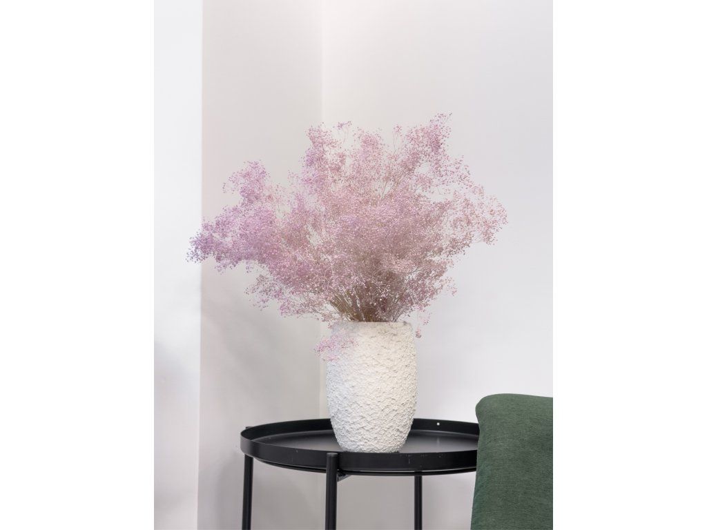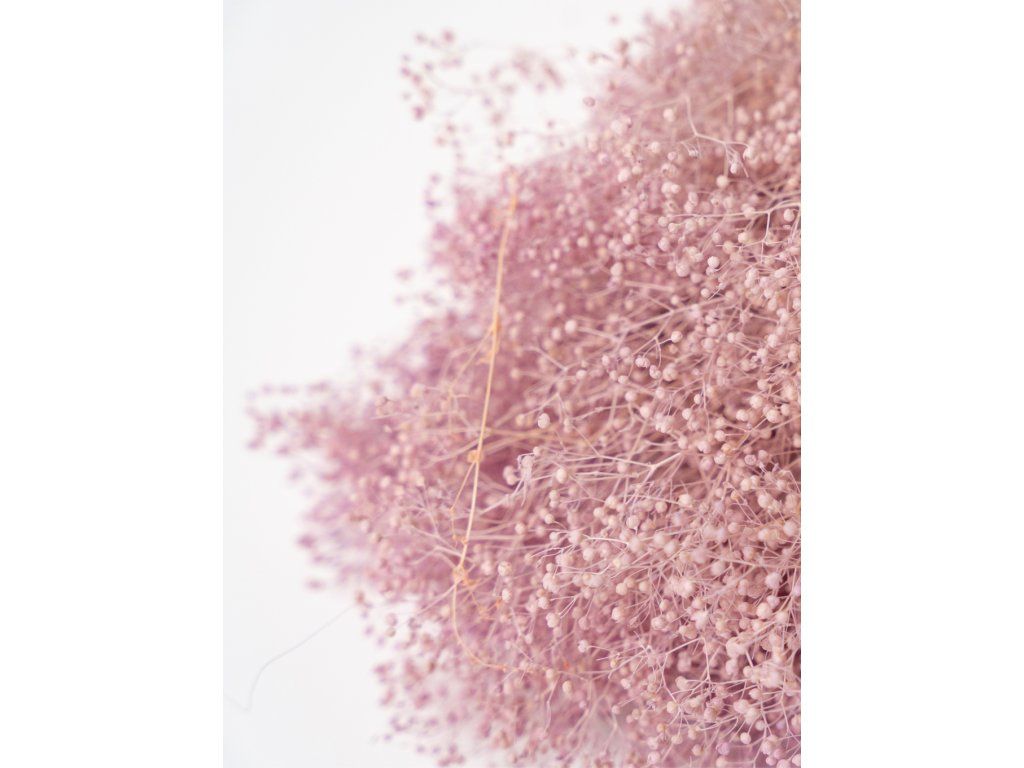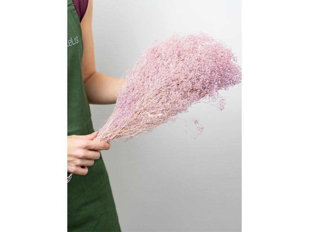 Stabilizovaná Gypsophila je 100% prírodný produkt. Vďaka stabilizácii si zachovávajú svoju farebnosť a pružnosť niekoľko rokov. Nevyžaduje žiadnu špeciálnu údržbu, ani polievanie, rosenie, čistenie.