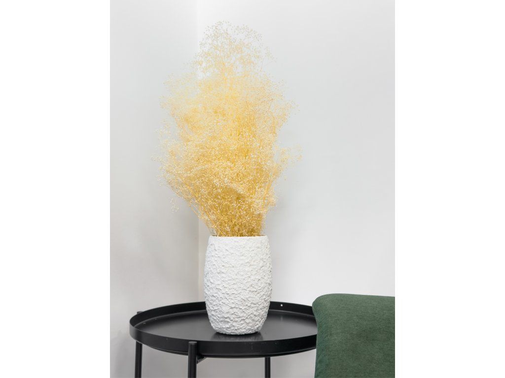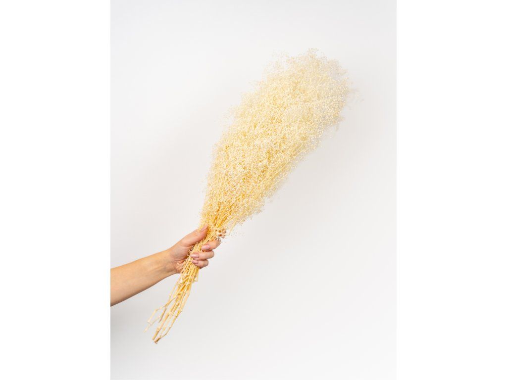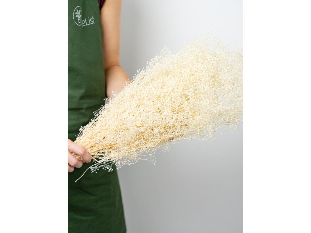 Stabilizovaná Gypsophila je 100% prírodný produkt. Vďaka stabilizácii si zachovávajú svoju farebnosť a pružnosť niekoľko rokov. Nevyžaduje žiadnu špeciálnu údržbu, ani polievanie, rosenie, čistenie.