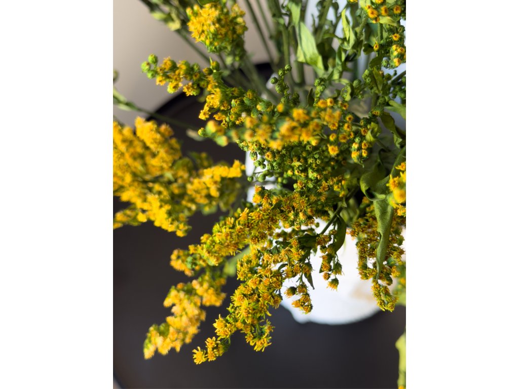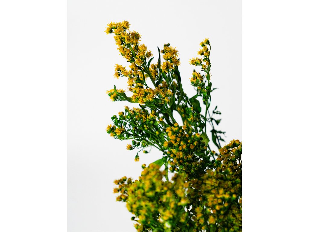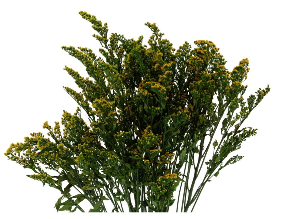 Solidago - Zlatobyľ, jeho vysoké a štíhle zelené stonky sú posiate nespočetnými jasnožltými kvetmi. Svojím vzhľadom Solidago evokuje slnečné polia uprostred leta. Pre svoju jemnosť a éterický vzhľad sa často používa vo svadobných kyticiach, kvetinových aranžmánoch a dekoráciách.