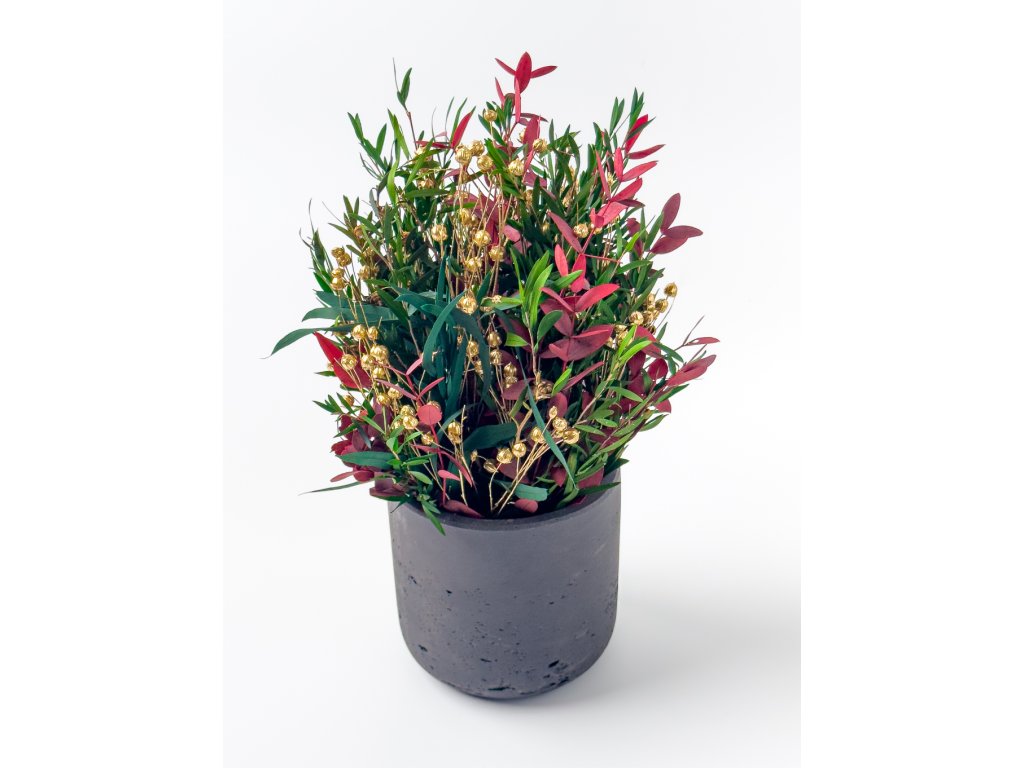 Stabilizovaný aranžmán v kompozitnom kvetináči - „Red Christmas“
