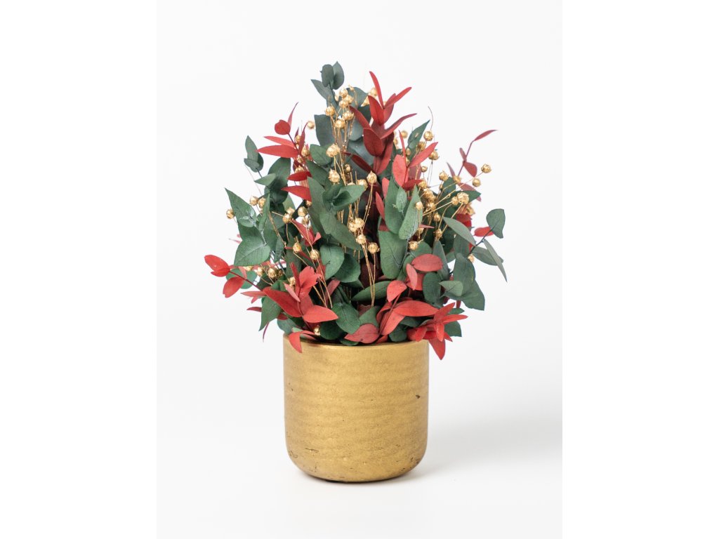 Stabilizovaný aranžmán v zlatom kvetináči - „Christmas Eucalyptus“