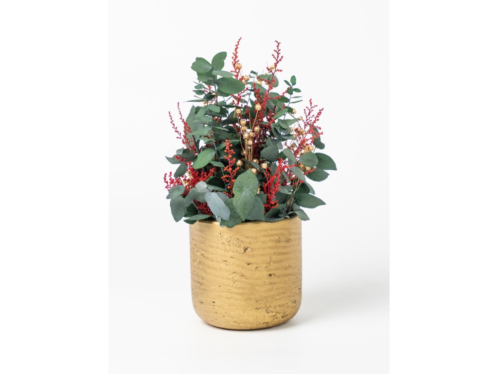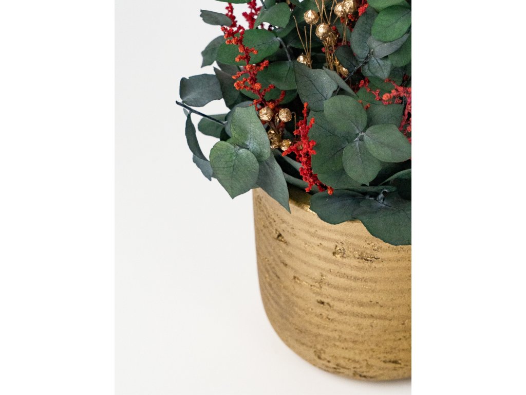 Stabilizovaný aranžmán v zlatom kvetináči - „Festive Gold“
