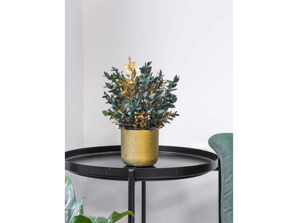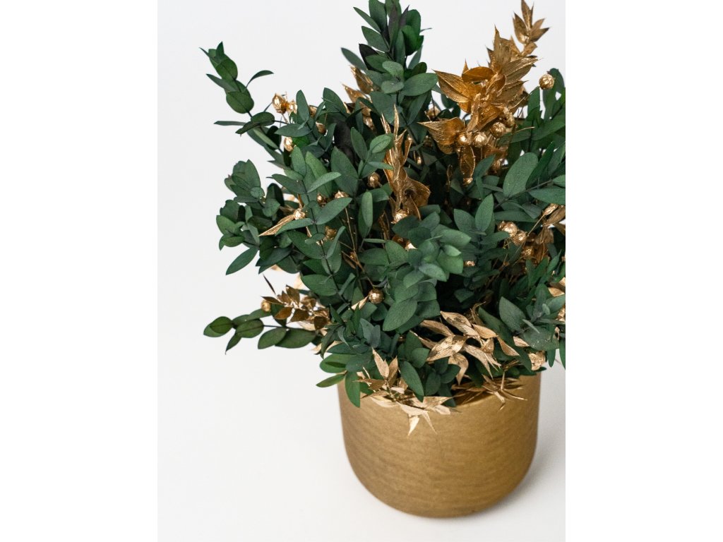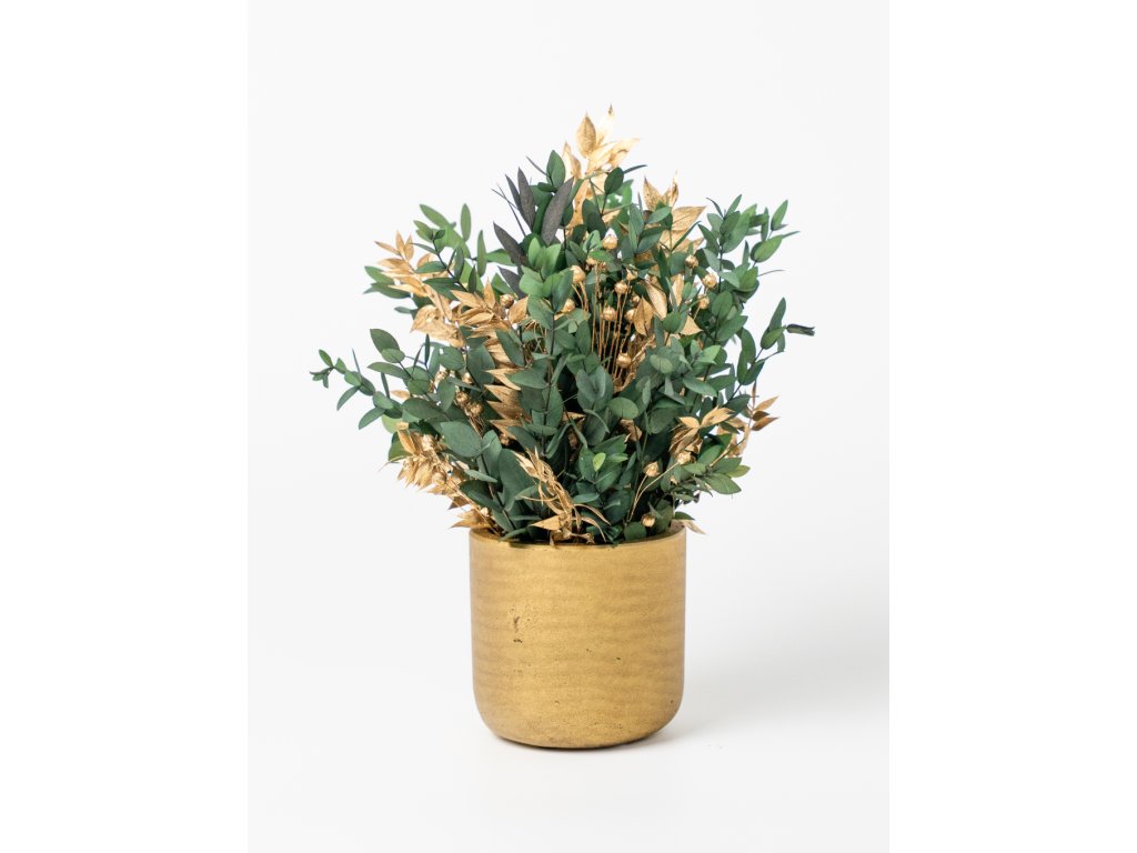Stabilizovaný aranžmán v zlatom kvetináči - „Golden Greenery“