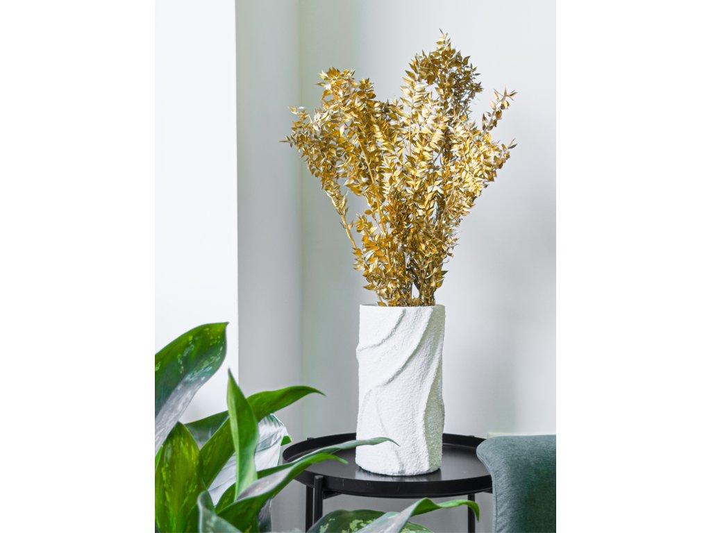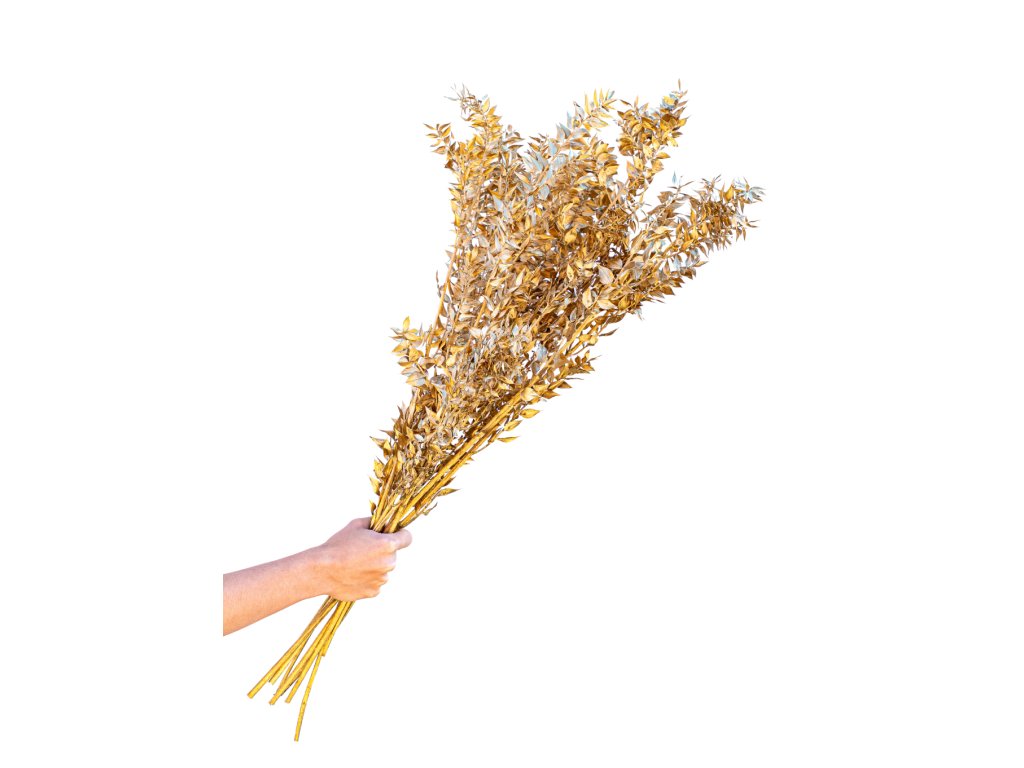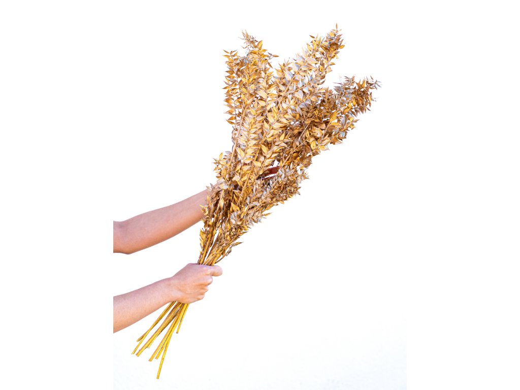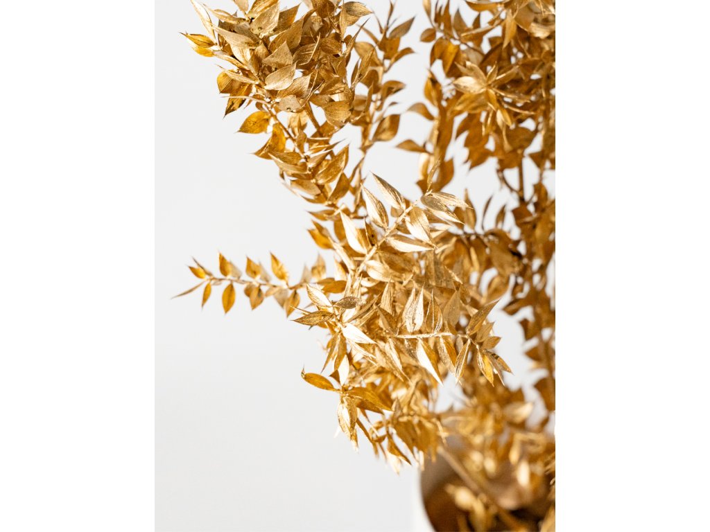 Stabilizovaný ruskus v zlatej farbe môžete využiť samostatne vo váze alebo ako doplnok do aranžmánov a vencov.
